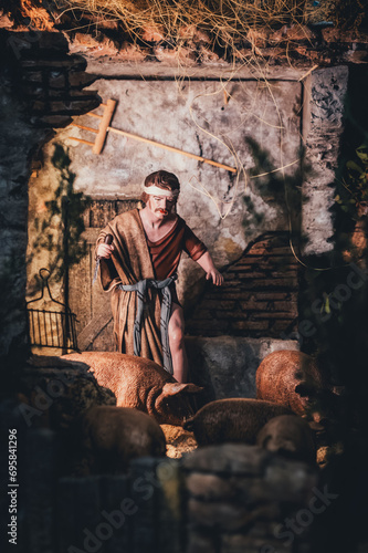 © J.M. Tornero, Obraz premium scenes from a nativity scene. Jesus birth. Christmas decoration