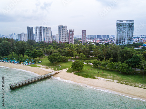 Obraz premium Scenic Aerial Drone Picture of East-Coast Park in Singapore