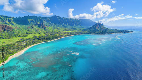 © Abu, Fototapeta premium Scenic aerial view of Hawaii's West coast featuring the beautiful Papaoneone beach