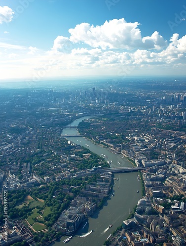 Fototapeta premium Scenic Aerial View of Iconic City Landscape with Serpentine River and...
