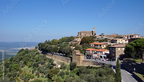 Obraz premium Scenic aerial view over the town of Montalcino, province of Siena, Tuscany,...