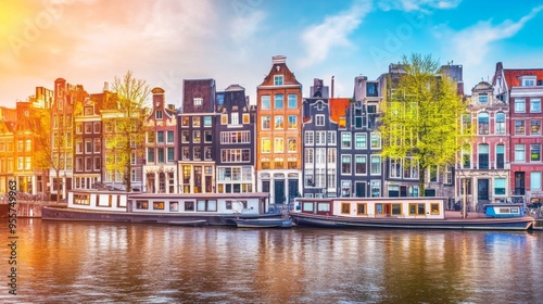 Fototapeta premium Scenic Amsterdam Canals at Sunset