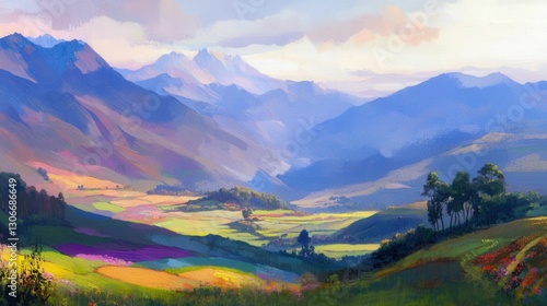 © Art Fusion, Fototapeta premium Scenic andean landscapes with verdant terraced fields and majestic mountains