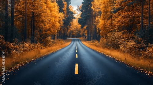 © Indronath, Fototapeta premium Scenic autumn forest with winding path high resolution hd background