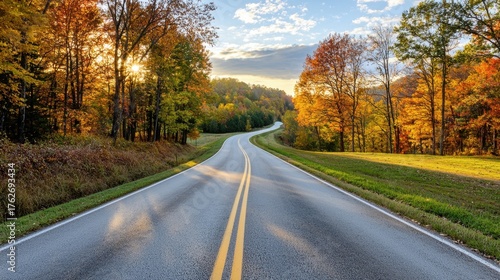 Fototapeta premium Scenic Autumn Highway Surrounded by Colorful Trees and Nature