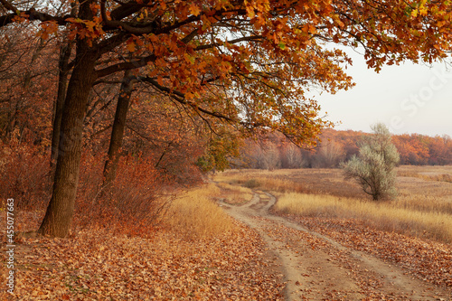 Obraz premium Scenic autumn landscape with dirt road