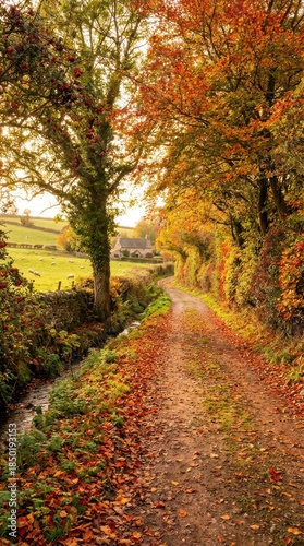 © Kitta Studio, Fototapeta premium Scenic Autumn Pathway Surrounded by Colorful Trees and Leaves