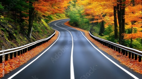 © Fozle, Fototapeta premium Scenic Autumn Road Winding Through Colorful Fall Foliage