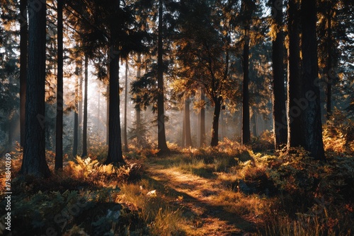 © Bojan, Obraz premium Scenic Autumn Woods Bathed in Golden Sunlight