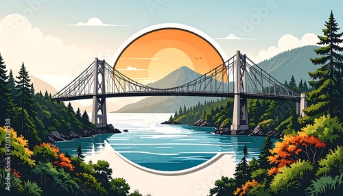 © arifyoga32, Naklejka premium Scenic bridge over a waterway
