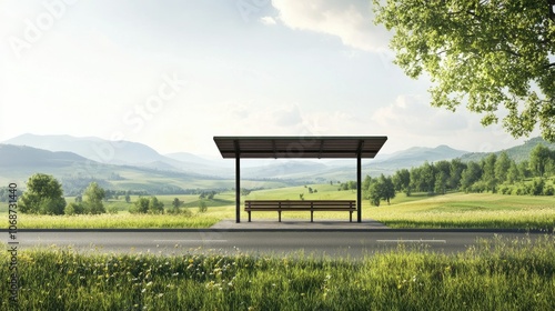 Obraz premium Scenic Bus Stop in Serene Landscape