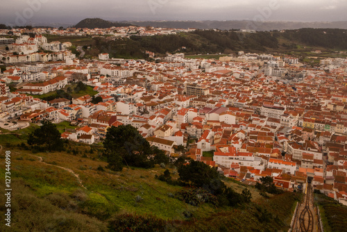 © Вика Зимненко, Fototapeta premium Scenic city view from Nazare viewpoint