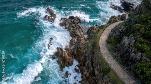 © Kitta Studio, Fototapeta premium Scenic Cliffside Pathway Overlooking Turquoise Ocean Waves