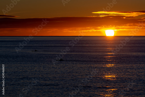 Obraz premium Scenic colorful sunrise over dark blue ocean water