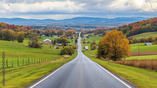 © somsri, Obraz premium Scenic Country Road with Autumn Landscape