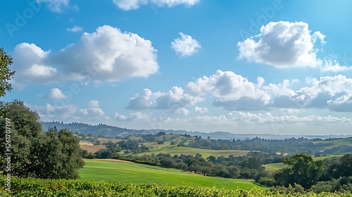 © misster, Fototapeta premium Scenic Countryside Landscape with Lush Green Fields and Dramatic Cloudy Sky