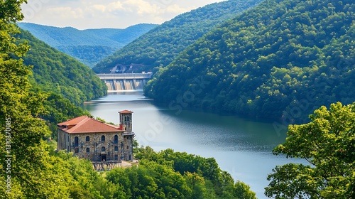 © sarifah, Fototapeta premium Scenic dam and lake nestled in mountains