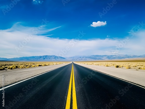 © Rady, Naklejka premium Scenic Desert Highway Adventure: Explore the Vast Open Road, Rugged Terrain & Panoramic Views
