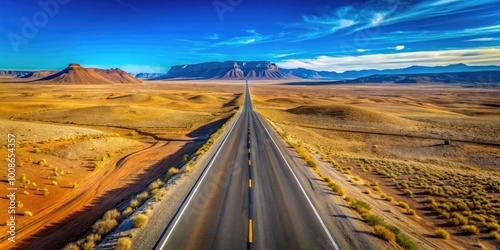 © Danicha, Fototapeta premium Scenic deserted road stretching through a vast landscape under a clear blue sky with no vehicles