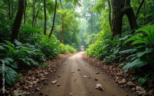 Fototapeta premium Scenic Dirt Path Through a Lush Green Forest – Serene Nature Landscape