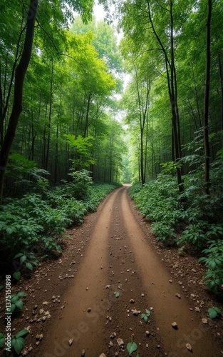Fototapeta premium Scenic Dirt Path Through a Lush Green Forest – Serene Nature Landscape