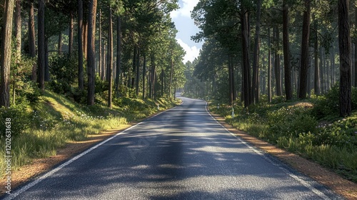 Fototapeta premium Scenic Drive Through Lush Pine Forest: A Tranquil Journey