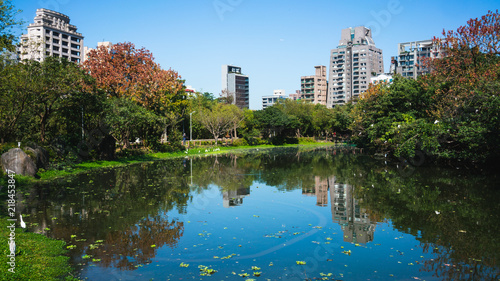 Obraz premium Scenic ecological pool in Daan forest park in Da'an district Taipei Taiwan