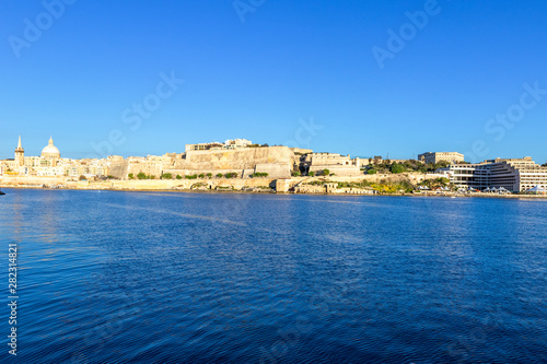 Fototapeta premium Scenic evening Valletta skyline view as seen from Manoel Island, Malta