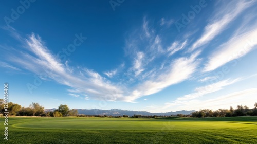Fototapeta premium Scenic Golf Course Landscape with Mountain Views