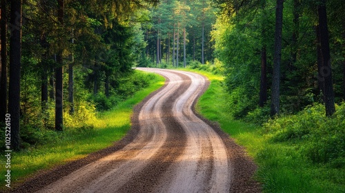 © Noppakun, Fototapeta premium Scenic Gravel Road in Pine Forest Landscape