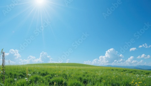 Fototapeta premium Scenic Green Field Under Bright Sunlight