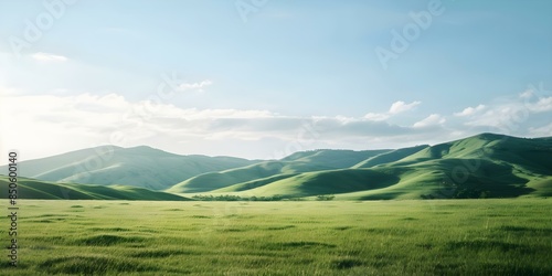 Fototapeta premium Scenic green hills under a peaceful sky represent natures beauty and growth....