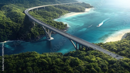 © HellouStock, Fototapeta premium Scenic highway bridge over a turquoise bay.
