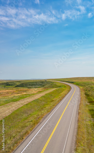 © edb3_16, Naklejka premium Scenic Highway Road in Alberta, Canada. Sunny Summer Day. Aerial view