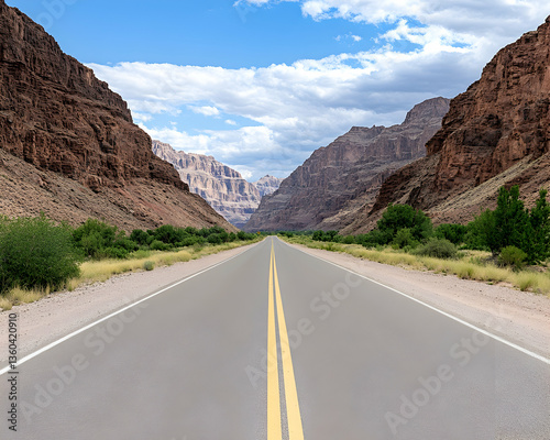 © Alfida, Naklejka premium Scenic highway through a majestic canyon, under a partly cloudy sky