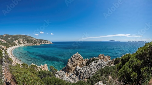 © AkuAku, Fototapeta premium Scenic island view with coastal bay and Mediterranean waters