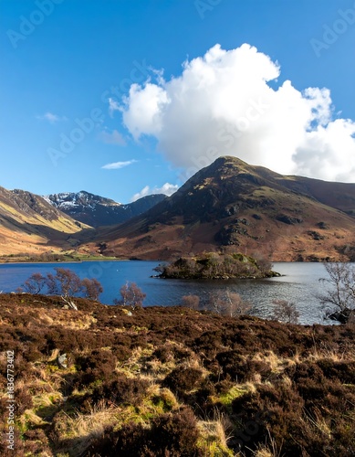 © Giyanti, Obraz premium Scenic lake with mountains (1)