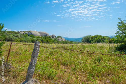 Fototapeta premium Scenic landscape of green hills and rocky mountains of the island of Sardinia...