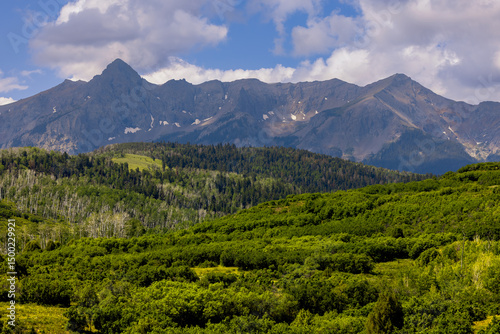 Fototapeta premium Scenic landscape of lush green foliage in San juan mountains at Continental...