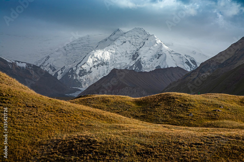 © Aleks Kend, Fototapeta premium Scenic landscape of mountain in Kyrgyzstan. The Trans-Alay Range. Pamir Mountain System. Cloudy day.