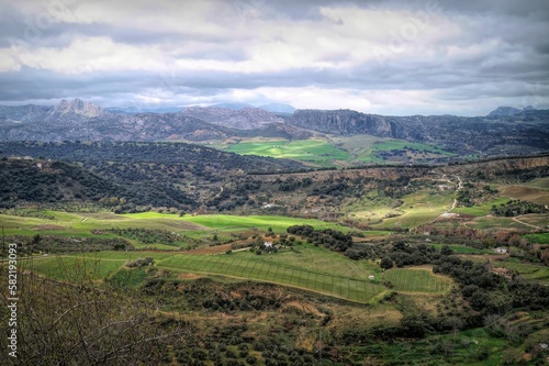 Fototapeta premium Scenic landscape view from the mountains and valley of Ronda, Andalusia, Spain