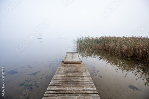 Fototapeta premium Scenic landscape with morning mood and fog at autumn in Finland