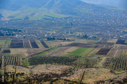 © vahanabrahamyan, Fototapeta premium Scenic landscape with settlements, Armenia