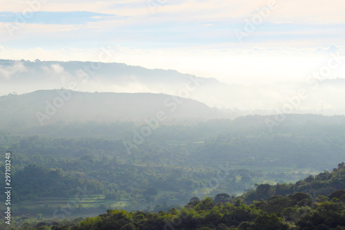 © Samiulla, Obraz premium Scenic misty view of the valley from the mountain