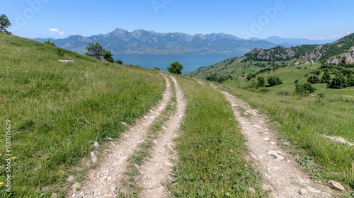 Obraz premium Scenic Mountain Lake Dirt Road Summer Landscape