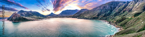 © Shawn, Obraz premium Scenic mountain landscape and sunset view along world famous coastline. Cape Town, South Africa is a wonderful travel destination for nature, adventure and tourism.