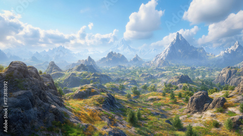 © Thatouch, Fototapeta premium Scenic mountain landscape under blue sky.