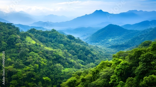 Fototapeta premium Scenic mountain landscape with lush green forest-covered hills