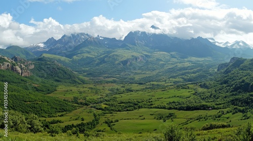 Fototapeta premium Scenic Mountain Landscape with Lush Green Valley