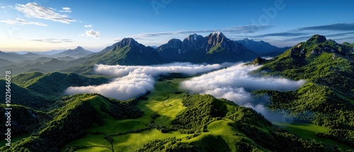 Fototapeta premium Scenic Mountain Landscape with Lush Greenery and Clouds